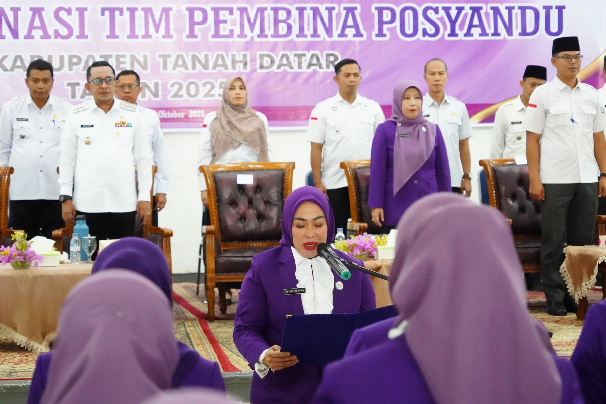 Tanah Datar, Sumbartodaynews.id-Disaksikan Bupati Tanah Datar Eka Putra, SE,MM, Ketua Tim Pembina Posyandu yang juga selaku Ketua TPPKK Kabupaten Tanah Datar Ny. Lise Eka Putra, SE melantik Ketua Tim Pembina Posyandu Kecamatan dan Nagari se-Kabupaten Tanah Datar, Rabu (29/10/2025) di Gedung Nasional Maharajo Dirajo Batusangkar.