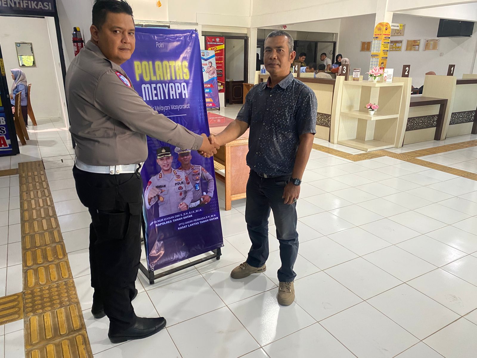 Seperti yang di laksanakan oleh Satlantas Polres Tanah Datar hingga hari ini, Jum’at (31/10) di unit Regident Mapolres Tanah Datar, sudah memasuki hampir satu bulan. Polantas Menyapa merupakan salah satu program atau agenda rutin yang di laksanakan oleh Satlantas Polres Tanah Datar dengan tujuan memberikan pelayanan terbaik buat masyarakat Tanah Datar dengan transparansi yang nyata.